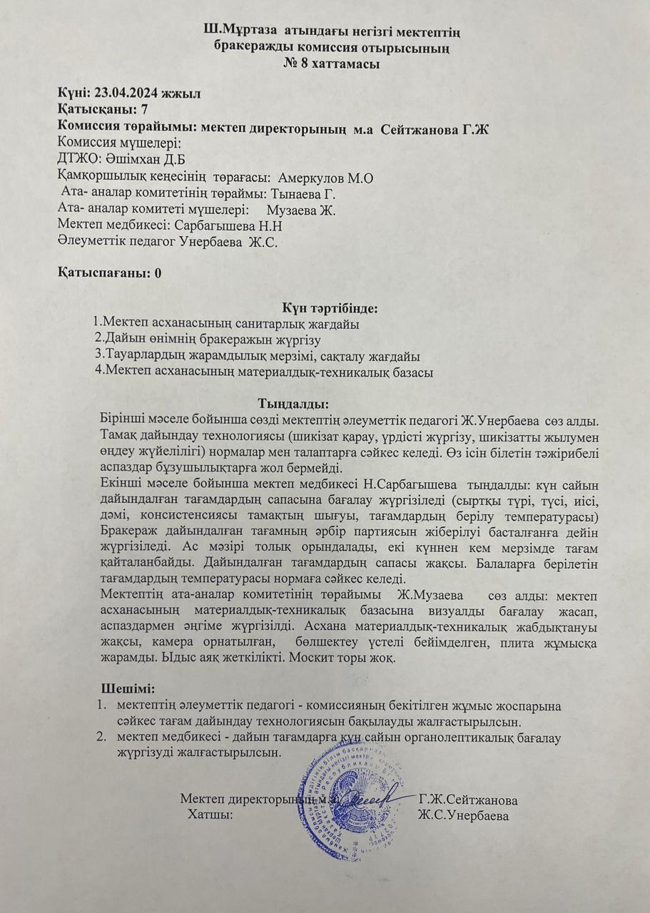 Бракераж комиссиясының отырысы » №6 орта мектеп